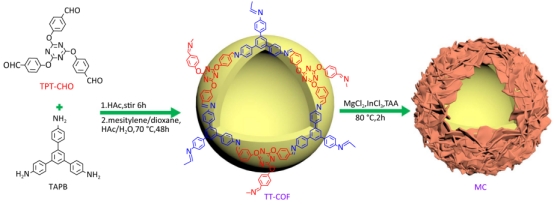 在TOP期刊Chinese Journal of Catalysis发表了以“Hollow spherical covalent organic framework supported gold nanoparticles for photocatalytic H2O2 production”为题的论文,阐明了将助催化剂金纳米粒子负载在共价有机框架材料(COF)表面, 可以有效促进光生载流子的迁移与分离, 从而获得较好的光催化产H2O2性能。金纳米粒子作为助催化剂能显著促进COF光催化产生H2O2,可为设计高效光催化产生H2O2的COF基催化剂提供重要参考。