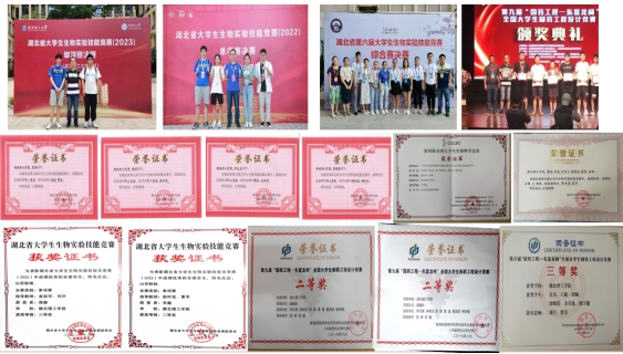 学生多人在国家级和省级生物及制药竞赛中取得优秀成绩,近5年来,获得全国大学生制药工程设计竞赛全国二等奖1项、全国三等奖3项;获得湖北省大学生生物实验技能竞赛省级一等奖3项、省级二等奖13项、省级三等奖2项等优异成绩。