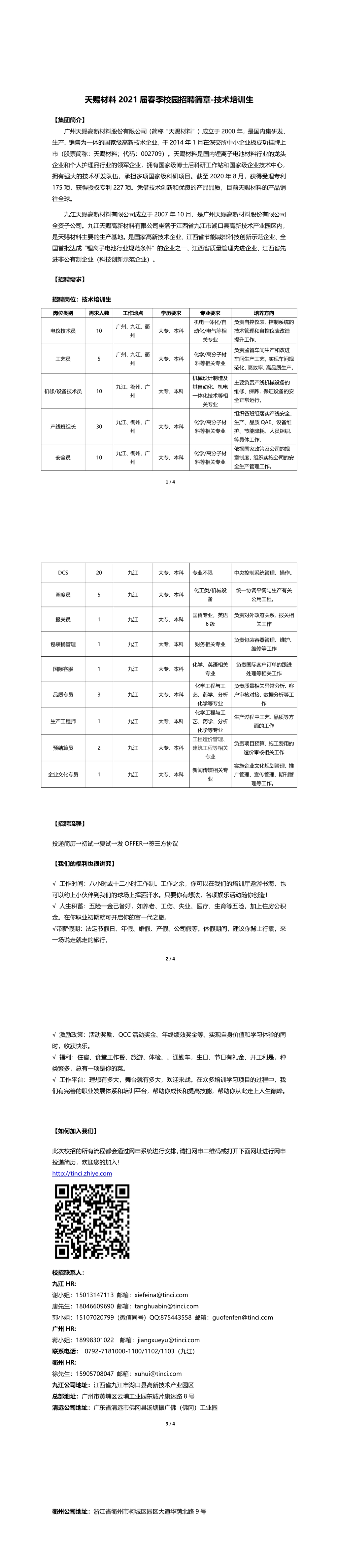 天赐材料2021届春季校园招聘简章—技术培训生