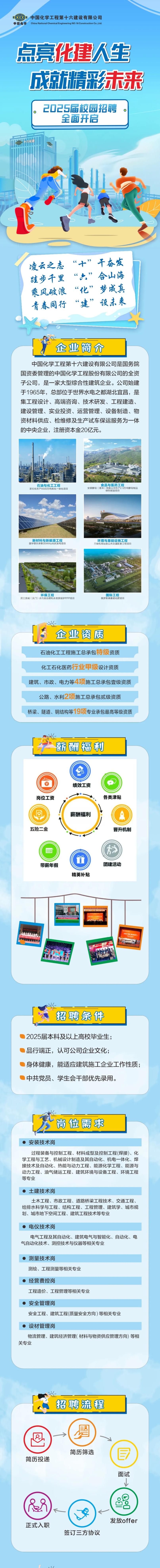 中国化学工程第十六建设有限公司是国务院国资委管理的中国化学工程股份有限公司的全资子公司,是一家大型综合性建筑企业,拥有石油化工工程施工总承包特级和化工石化医药行业甲级设计资质, 建筑工程、市政公用工程、机电工程、电力工程施工总承包一级资质,水利水电工程、公路工程施工总承包二级资质,钢结构工程、环保工程、桥梁工程、隧道工程、输变电工程、电子与智能化工程、 消防设施工程、防水防腐保温工程、地基基础工程、起重设备安装工程、建筑装修装饰工程、建筑机电安装工程、建筑幕墙工程、古建筑工程、城市及道路照明工程专业承包一级资质。 公司始建于1965年,总部位于世界水电之都湖北宜昌,是集工程设计、技术研发、工程建造、建设管理、实业投资、运营管理、设备制造、物资材料供应、检维修及生产试车保运服务为一体的中央企业, 注册资本20亿元。