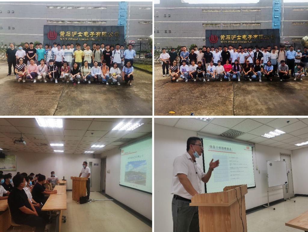2022年6月2日,在冯伟、刘爱红等博士的带领下,复合材料与工程专业2019级、2020级学生赴黄石沪士电子开展认识实习与交流。沪士电子人力资源部张超、方田径等人热情接待了我院师生。
