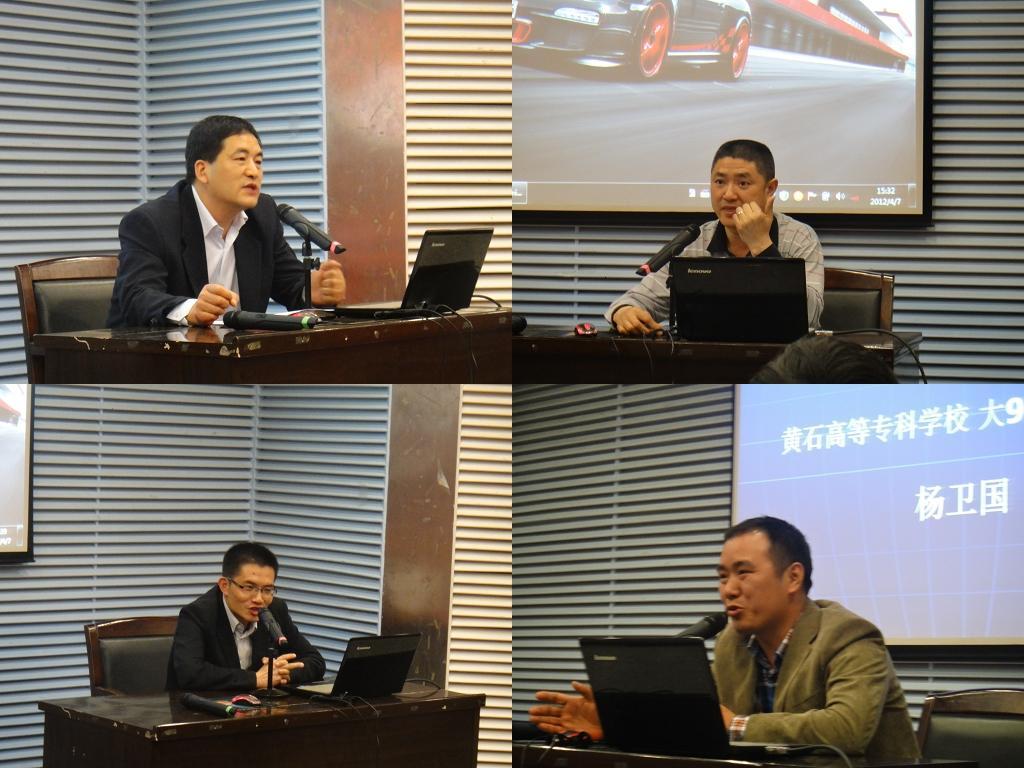 校友甘立成是90级建材班毕业生,他首先作为校友代表作重要讲话。他以诙谐的语言讲述人生二十年的深刻感悟。期间,他强调大学生要具有:一,毕业后的再学能力;二、创业前的实践经验。三、培养“树立资源圈子”的艺术手段。校友刘明星,湖北工业大学副教授,为表达对母校崇高的敬意,他在讲话中与在座的学弟学妹分享了他在工作与求学中的“酸甜苦辣”。广州天脉油漆化工有限公司付伟、湖北高迅电子营销公司总经理杨卫国及江汉大学副教授米铁等校友深入浅出地与大家交流了成人、成才、成功的经验智慧。