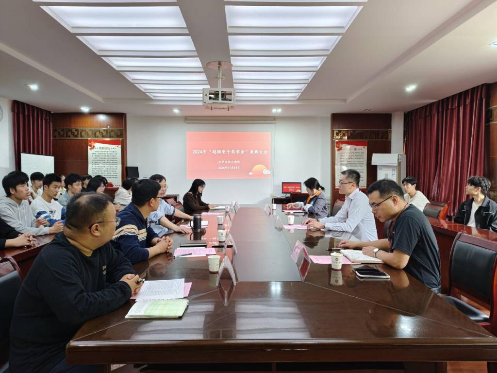 本网消息 秋意浓,韶华正盛,青春如诗,每一行都跃动着金色的梦。为激励先进,树立优秀典型,带动更多湖理化工学子积极向上,奋勇争先,11月14日下午,化工学院在K5301举行“超颖电子奖学金”表彰大会。化工学院班子成员及辅导员老师、超颖电子电路股份有限公司总经理蔡宗龙、副处长王博以及部门经理黄双兰出席会议,会议由副书记闵建华主持。