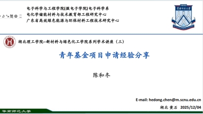 报告结束后,与会师生就锂硫电池的性能测试方法、半导体光电化学器件的结构设计,以及基金申报的注意事项等问题,与陈老师展开了热烈而深入的交流。师生们纷纷表示,报告内容紧扣前沿、研究思路清晰系统,不仅为从事新能源材料与器件研究的学者拓展了创新视角,也为青年教师申请科研基金提供了十分有益的经验借鉴。本次报告进一步促进了学校在新能源材料领域的学术交流与科研协作,为推动学院高质量发展注入了新的学术动力。(通讯员 詹亦贝)