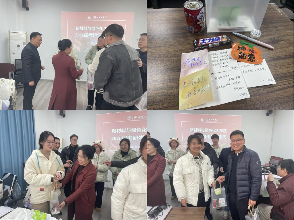 新材化学院始终高度重视学生成长与发展,坚持“以生为本”,近年来通过设立考研专用自习室、组织经验交流、开展心理疏导、提供精准指导等多项举措,全过程、全方位为考研学子保驾护航。此次慰问活动不仅传递了学院的温暖与支持,更营造了积极向上、团结互助的优良学风,助力学子们在研途征程中坚定信心,勇毅前行。(通讯员 邹刚)