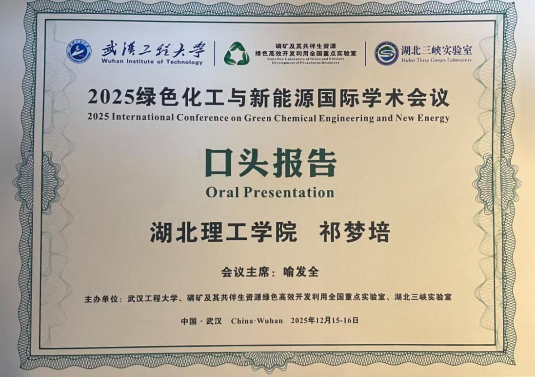 2025年12月15日至16日,由武汉工程大学主办的“2025绿色化工与新能源国际学术会议”在武汉隆重举行。会议汇聚了来自北京大学、加拿大阿尔伯塔大学、比利时根特大学、柏林工业大学、武汉大学、上海交通大学、韩国高丽大学等高校及科研机构的100多位国内外专家学者、行业精英,共同探讨国内外绿色化工与新能源领域的前沿科学问题。太阳集团网站8722谢小银副教授、吕桂英副教授、焦萍副教授、盛喆副教授及青年教师祁梦培博士等应邀参会,与来自国内新能源与材料领域的顶尖专家学者齐聚一堂,围绕学科前沿、技术创新及未来发展趋势展开深入交流,充分展现了学院在绿色化工与新能源领域的科研实力与学术影响力。