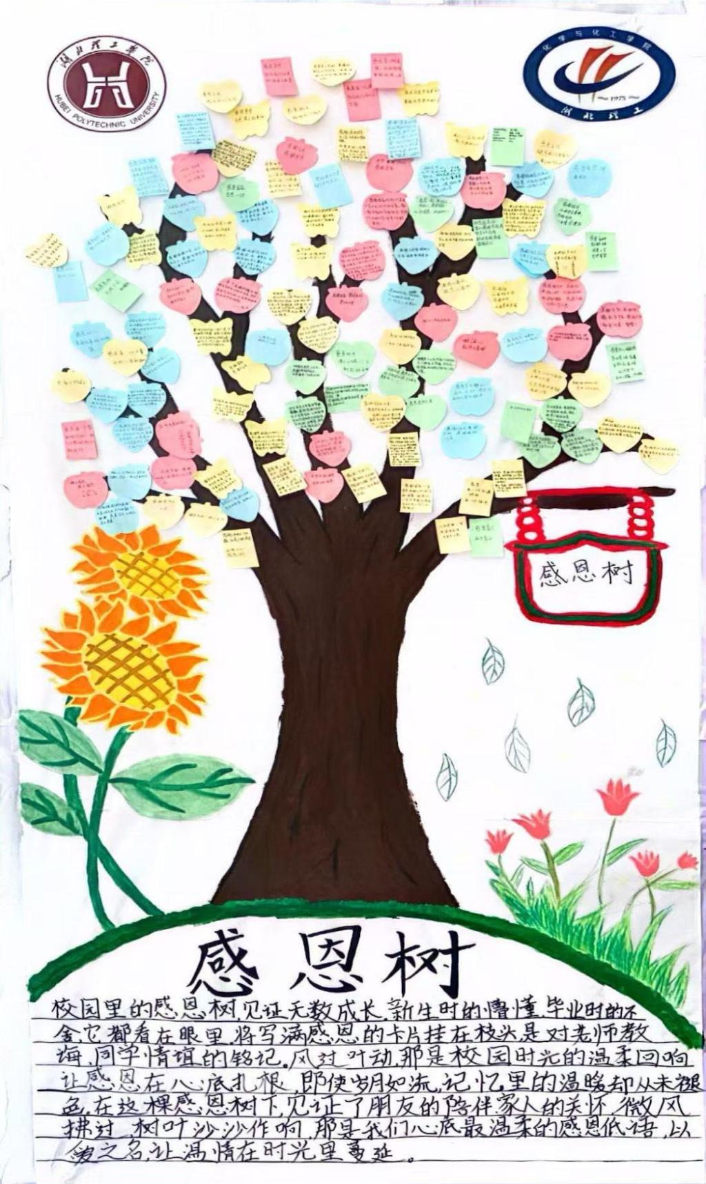 化工学院学生通过书写“感恩寄语卡片”表达对师长、亲友及社会的诚挚谢意,将卡片制作成感恩树,在学院宣传栏集中展示。