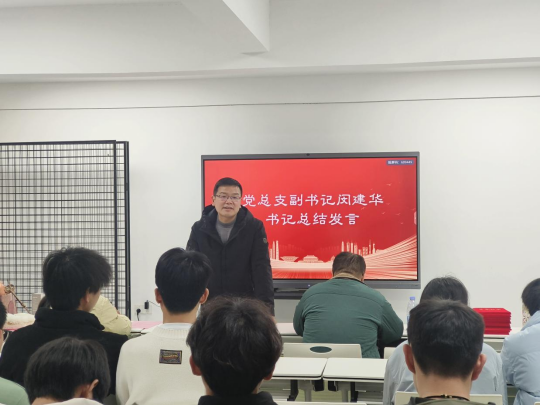 党总支副书记闵建华对所有受到表彰的集体和个人表示衷心祝贺,回顾了化工学院在本年度所取得的一系列的成绩。学院不仅荣获诚信感恩优胜单位、征兵工作先进单位、心理健康宣传月优秀集体等荣誉称号,在体育节 “啦啦操” 比赛中还斩获学校第二名的佳绩,创历史最好成绩,“爱之暖阳” 志愿服务队也被评为 2024 年度优秀志愿服务大队。同时,李晓红同学荣获 “十大励志之星”,张天赐同学荣获 “十大心灵使者”,学院在考研工作方面也成效显著,通过研途有你、研途相伴、研途助力、研途花开等一系列举措,本年度研究生录取率高达 25%,位居学校前列。