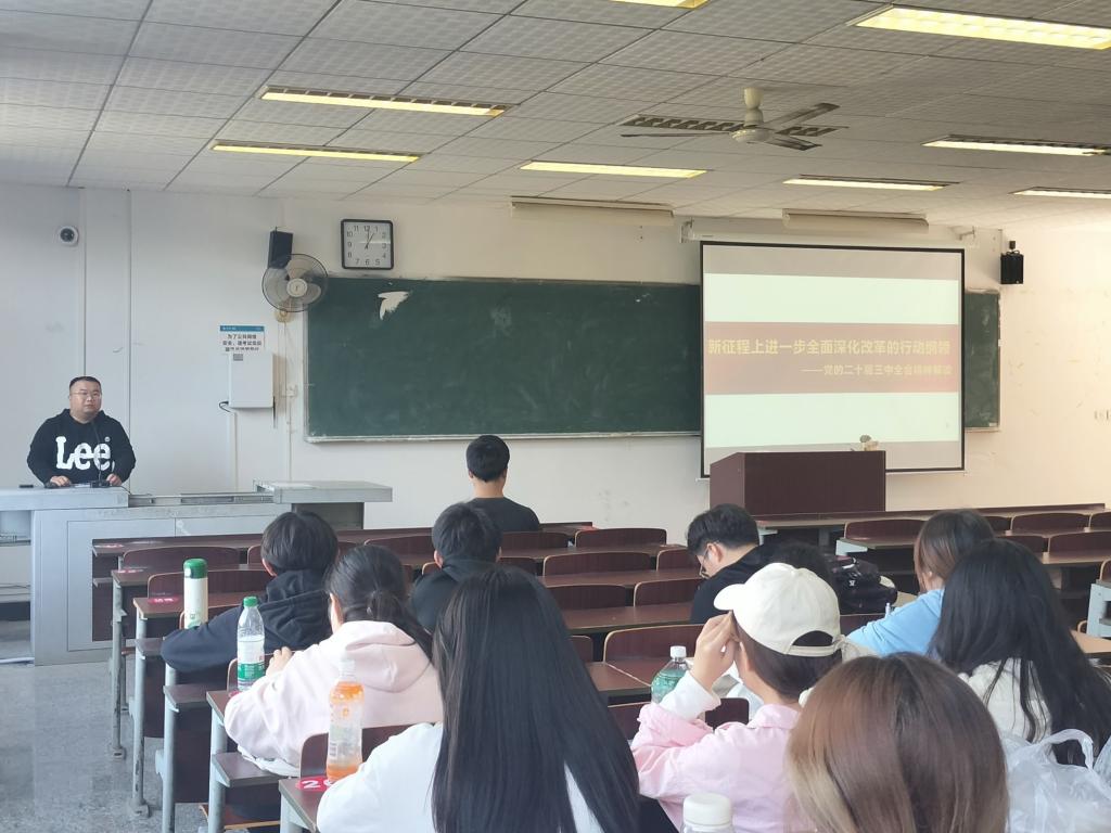 党总支副书记闵建华、潘艳纯副教授为学员讲授《有理想、敢担当、能吃苦、肯奋斗的新时代好青年》课程;团总支负责人苏家兴以《新征程上进一步全面深化改革的行动纲领 — 党的二十届三中全会精神解读》为题给全体学员授课;辅导员刘霞老师讲授思政课《资助育人 诚信感恩》,各学生骨干也依据实际工作和思想引导开展精彩授课。