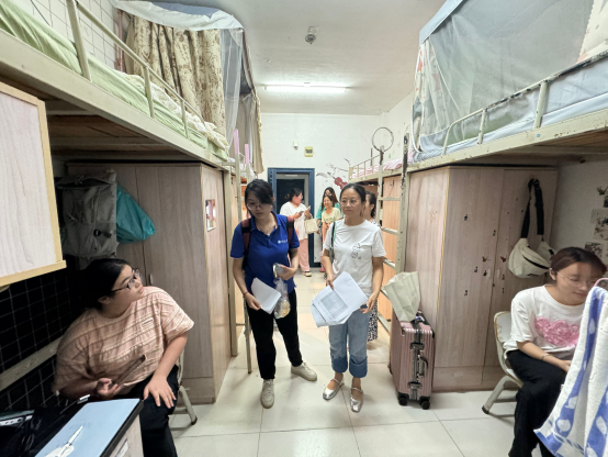 在查寝过程中,老师们积极鼓励 2024 级的新同学们尽快适应大学生活的节奏,引导他们尽快树立明确的学习目标并找准前进的方向,尽早对大学生活做好规划。同时,老师们反复强调安全问题的重要性,提醒同学们在日常生活里务必注意财产安全、用电安全以及人身安全,特别是强调了交通安全,要时刻谨防诈骗,严格遵守学校的各项规章制度。此外,老师们还叮嘱同学们要相互包容、彼此交流,共同营造一个温暖和谐的相处环境。当走访毓贤学生公寓时,由于该公寓是新建宿舍,学工办贴心地为每一位同学准备了活性炭包。此次查寝活动得到了家长的高度认可,一位陕西籍家长表示,把孩子送到理工学院很放心。
