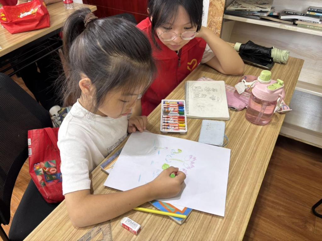 在廉洁教育环节,志愿者们向孩子们讲解“清廉的定义”,从清廉的简单理解到历史溯源,生动阐述让孩子们对清廉有了初步认知。在互动环节,孩子们积极参与,踊跃分享自己对清廉的理解,现场气氛热烈。除了知识讲解,课堂还设置了绘画环节。孩子们在志愿者的指导下,用手中画笔描绘出心中的廉洁图景,有的画出象征廉洁的莲花,有的勾勒出公正无私的人物形象。一幅幅画作,展现出孩子们对廉洁品质的向往与追求。
