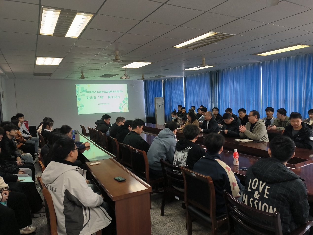 (本网消息 通讯员 霍锦章) 2 月 27 日,在 K3-401 会议室,材料学院举办 2025 届毕业生考研学生座谈会。陈跃院长、冯伟副院长、胡敏副书记以及霍锦章、龚翊敏、杨明、张宏霞老师与 50 余名考研同学举行座谈。胡敏主持了座谈会。