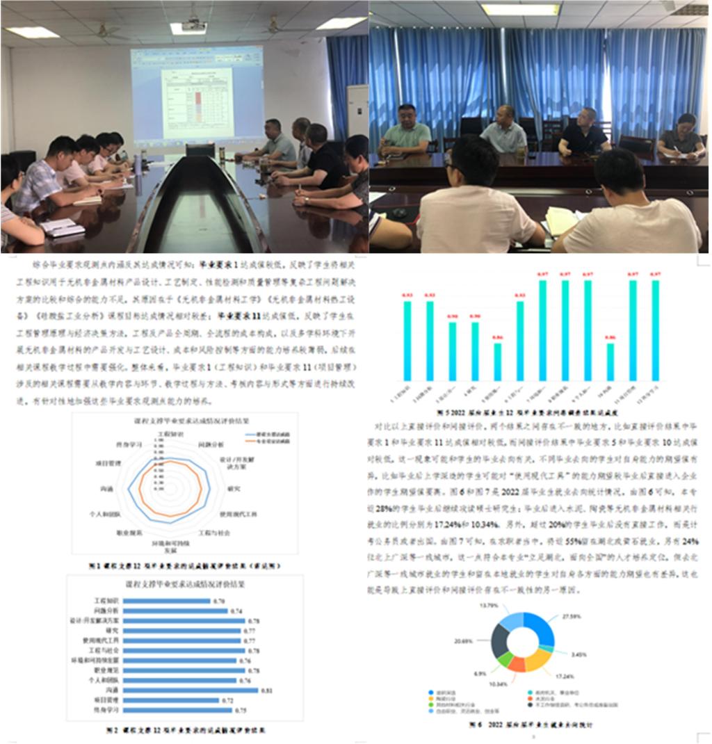 会议伊始,专业负责人陈凤对2022届毕业生毕业要求达成评价的数据来源、评价依据、评价方法、评价内容以及达成情况进行了说明,全体参会人员认真审阅了《无机非金属材料工程专业2022届毕业要求达成情况分析和持续改进报告》。