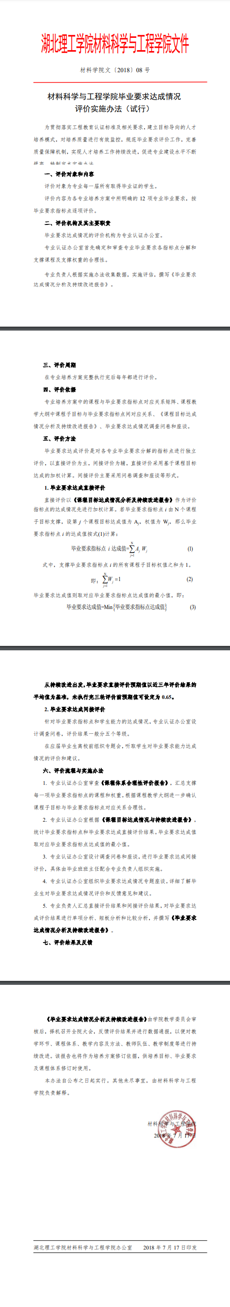 《材料科学与工程学院毕业要求达成情况评价办法(试行)》
