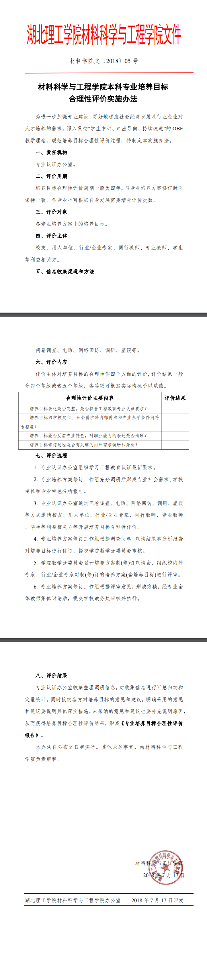 《材料科学与工程学院本科专业培养目标合理性评价实施办法》