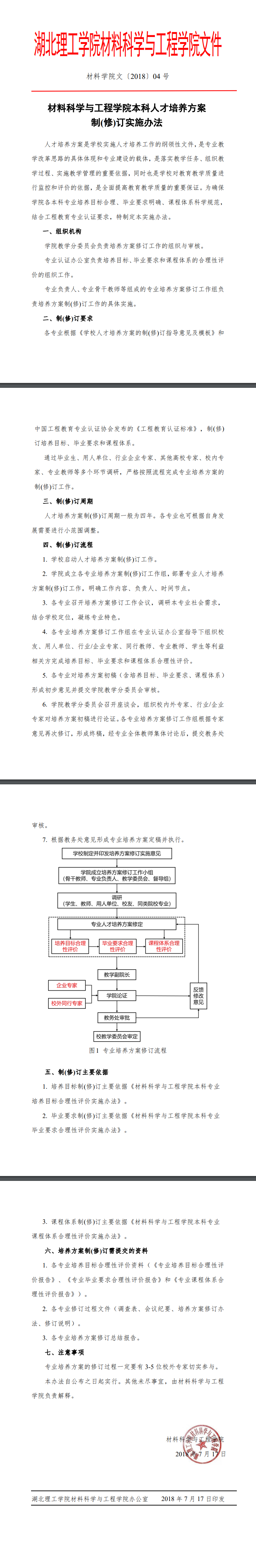 《材料科学与工程学院本科人才培养方案制(修)订实施办法》